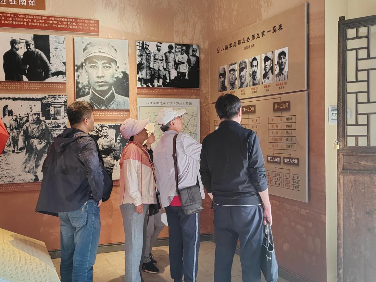 下午,一行人来到南茹八路军总部旧址进行参观学习。抗日战争时期,八路军总司令部曾三次在此驻扎。1939年6月,八路中总部转迁至此后将庙宇略加整修后使用,成为华北各解放区的指挥中心。此处布置了七个展厅,在长达120多米的展线里,有300条幅历史照片,几百件珍贵革命文物。南茹村八路军总部的历史,是新时代党史学习教育、革命传统教育和爱国主义教育的生动教材。