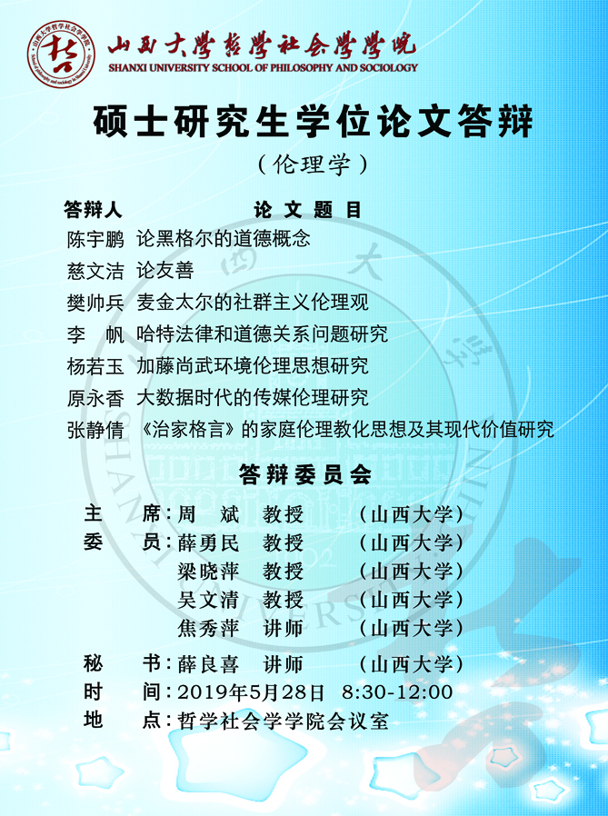 2019届硕士研究生学位论文答辩通知