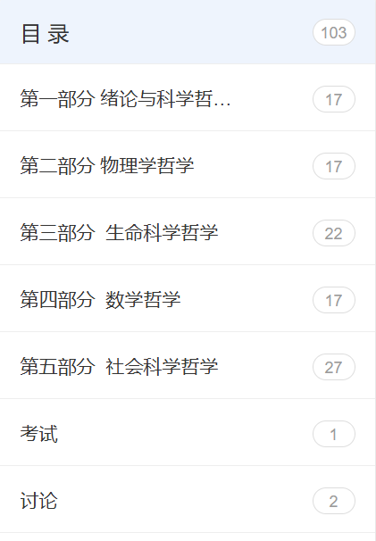 《科学哲学》是从哲学角度考察科学的一门学科。它以科学活动和科学理论为研究对象,主要探讨科学的本质、科学知识的获得和检验、科学的逻辑结构等有关科学认识论和科学方法论方面的基本问题。除一般科学哲学与科学哲学史教学内容外,课程还包含了物理学哲学、生命科学哲学、数学哲学、社会科学哲学等多个分殊科学哲学内容。课程包含了47讲103个授课知识点,容纳了科学性与哲学性的双重思维、人文与科学的对话,对于新时代高等院校人才综合素养的提高具有重要的意义和价值。