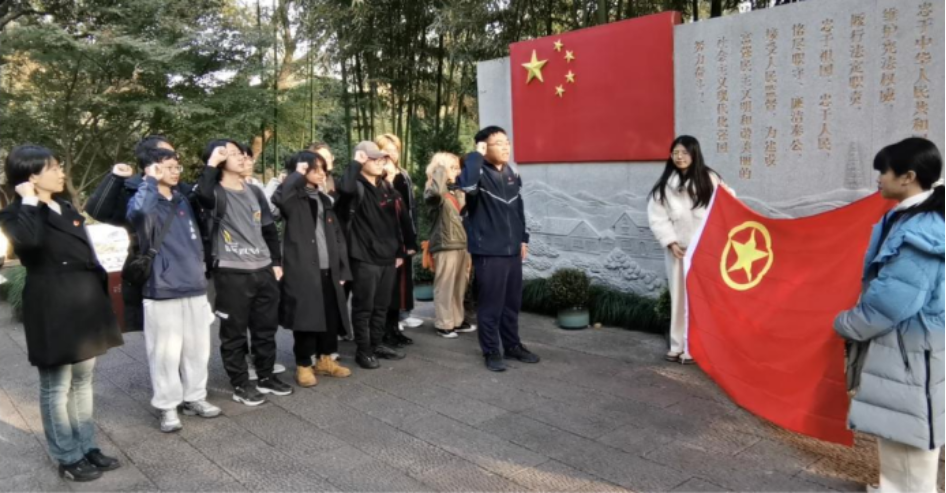 中国特色社会主义宪法为我们坚定“四个自信”奠定了宪法根基,今年是宪法制定69周年,为重温历史,同学们来到五四宪法起草地,了解学习五四宪法从起草、讨论、通过到实施的全过程。“现行宪法是在深刻总结党领导人民进行社会主义革命、建设、改革的成功经验的基础上不断总结完善而形成的硕果,我们要在时代的伟大变革中启迪智慧,学习贯彻习近平法治思想,弘扬法治精神,增强法治自觉。”2022级员工李胜凯说道。从陈列馆出来后,同学们集合整队在宪法宣誓墙面前重温入团誓词。宣读着誓词,同学们更加深刻地认识到每个人所肩负的责任。