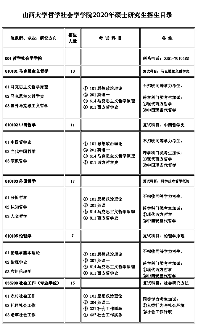 哲学社会学公司2020年硕士研究生招生目录、自命题科目参考书目