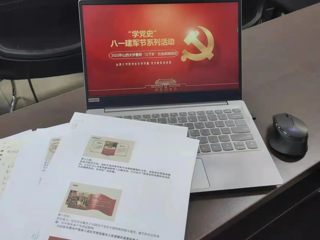 为纪念人民解放军成立95周年,在八一建军节之际,伟德官方网站暑期社会实践睿翼实践团——党史学习教育团福建分队在福建省福州市鼓楼区洪山镇福屿社区居委会的帮助下,深入社区,就党的建军历史、建军思想以及历史意义为当地的青少年开展相关的讲座,在推进青少年对我国建军历程了解更加深入的同时,也培养青少年的拥军意识,促进军民和谐。