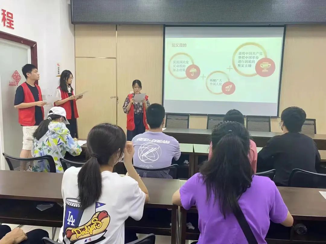 为更好地组织开展党史学习教育主题活动,我们团队在结合地缘特色以及对现实时间节点的考量过后,最终讨论决定深入社区,向青少年朋友们开展“学党史·八一建军节”主题党史宣讲活动。从活动的前期准备工作到最终的线下开展工作,在与团队成员们积极讨论和修改宣讲内容的过程中,我对于建军党史的了解也更加深入,充分地感受到中国共产党领导人民军队,一步步带领中华民族谋幸福、谋发展、求突破,求创新的历程。作为伟德官方网站暑期社会实践哲公司睿翼实践团的一员,通过讲述那段战火纷飞的时代,传播党史红色精神,在宣讲中实践贯彻习近平总书记对青年一代“学史明理”、“学史力行”的殷切嘱托,我在感到十分光荣的同时,也感到责任重大。这激励着我在未来将更好地响应党的号召,为中华民族伟大复兴贡献自己的一份力量。