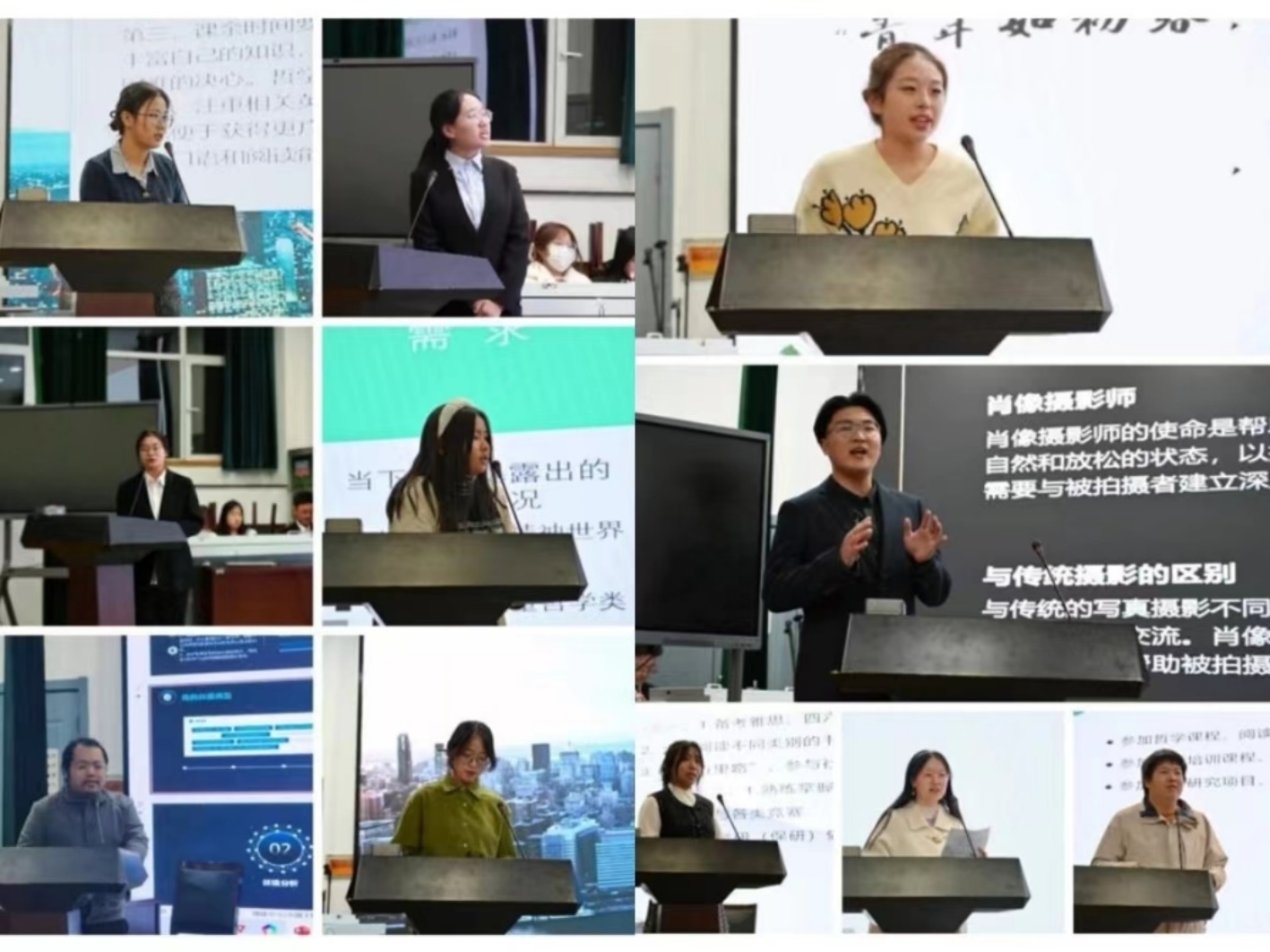 比赛正式开始,通过线上初赛选拔,11名选手脱颖而出,进入院级现场赛。本次比赛分为PPT演讲与答辩两部分。在第一阶段,参赛选手们从自我分析、职业认知、目标确立、行动计划等方面对自己的职业生涯进行了展示,分析深入、调查详实、逻辑缜密、思路创新,评委们对参赛同学的表现给与了高度评价。