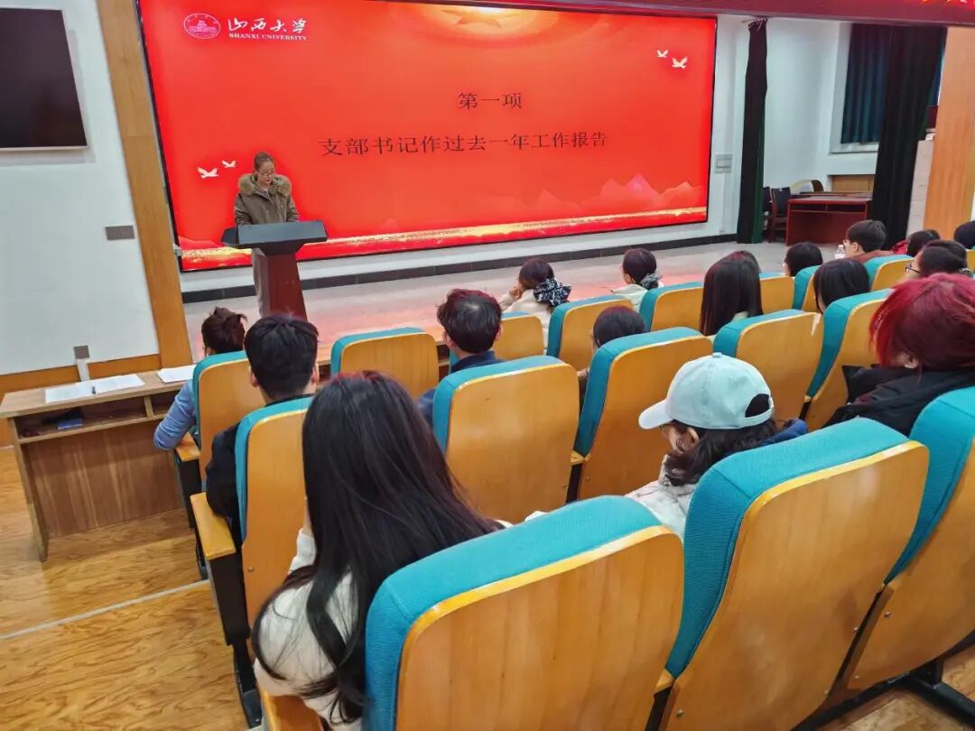 支部副书记吴思睿同志代表支部作 2025 年度工作报告,全面总结过去一年支部在思想建设、组织建设、宣传工作、学风引领、党员作用发挥等方面的工作成效,深入查摆支部建设存在的短板与薄弱环节,深刻剖析问题根源,并明确提出下一步整改思路与改进方向。