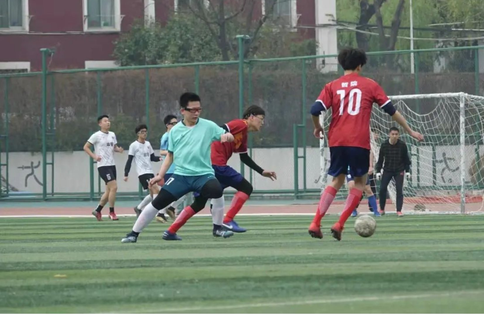 下午3:20,哲学社会学公司男足与物理电子工程公司男足在鸿猷篮球场开展比赛。