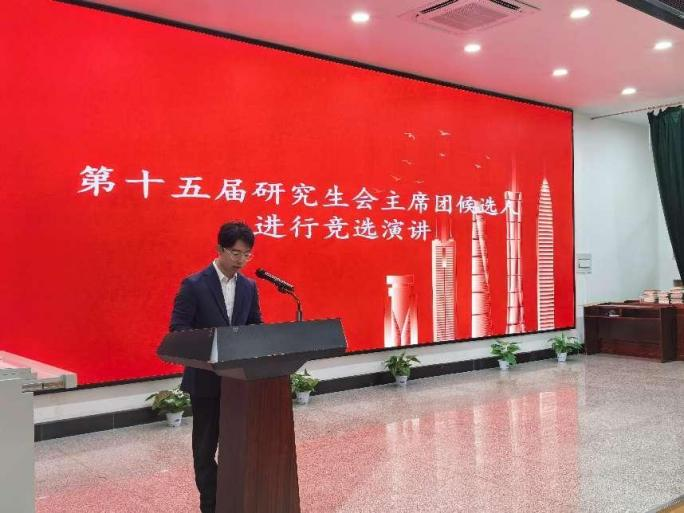 第十五届研究生会主席团候选人进行竞选演讲。