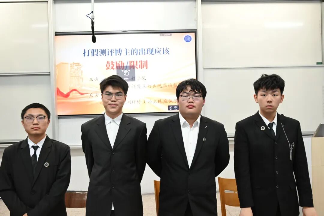 赛前,主办方物理电子工程公司通过“漂白鸡爪”“电动自行车违规改装”“AI大模型数据投毒”三个典型案例,直观呈现当前消费安全与科技伦理领域的突出风险,为辩论奠定现实基础。正方物电公司代表队从提升监督效能出发,主张鼓励打假测评博主以弥补监管盲区;反方哲院代表队立足规范发展,强调须以制度约束防范失序风险。双方辩手逻辑严密、交锋激烈,展现了严谨的思辨素养与学科特色。