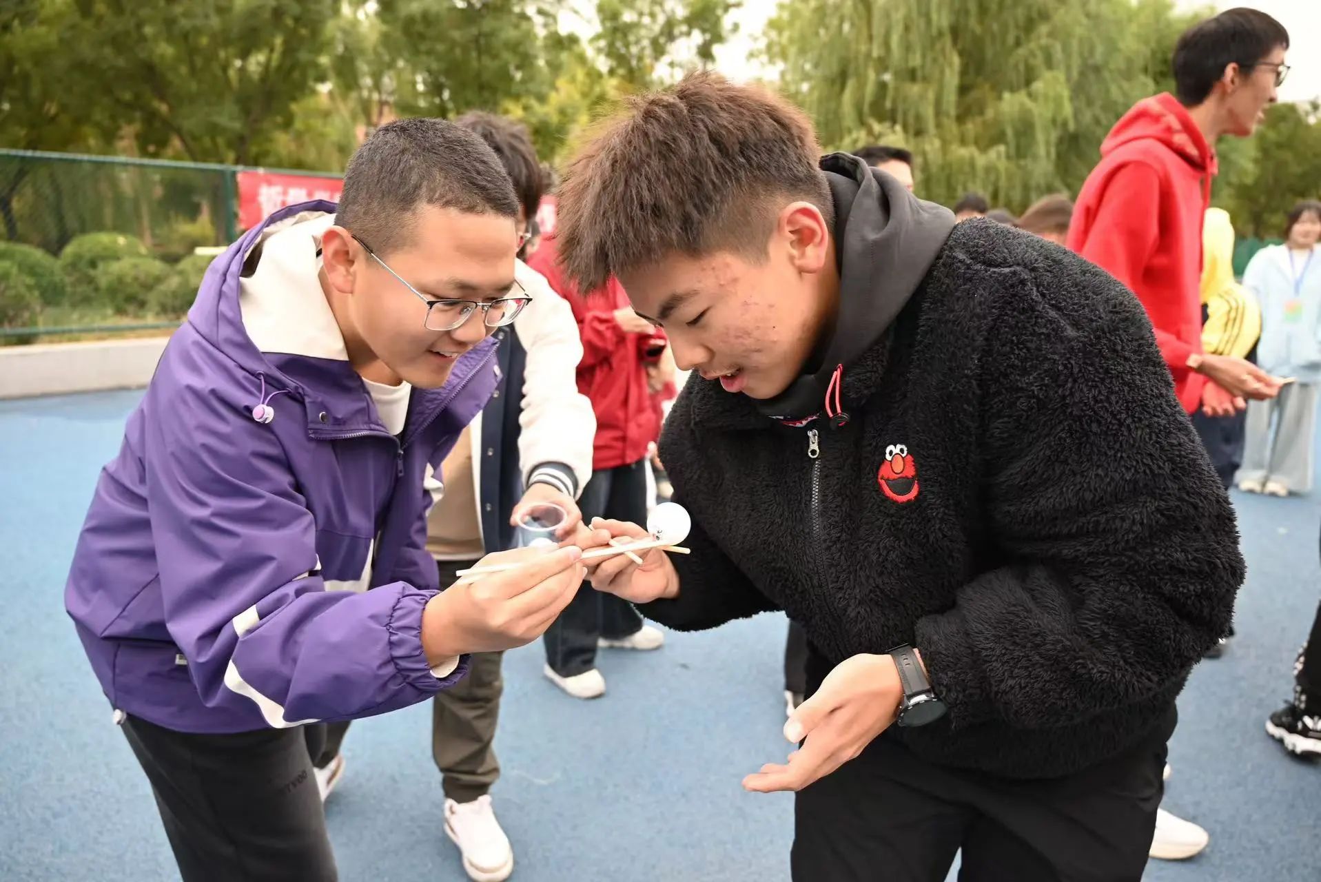 多人多足、传递乒乓球、水杯接力、相互拥抱、“五史”知识接龙,多样化的活动要求同学们团队精诚合作,同学们从拘谨到熟悉,一次次失误后的齐心协力、一次次努力时的全神贯注、一次次成功后的欢呼雀跃,都留下了“劲往一处使,拧成一股绳”的共同回忆。
