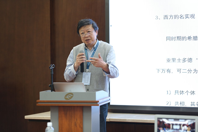 邢滔滔教授的报告为“类与指——名墨的名实观”。邢滔滔教授认为先秦的名辩之学考察名与实,与同期希腊形而上学有类似的问题,其核心是类名与类名之实。通过考察类名在先秦文献中的用法,他总结了其中的两种意义:类与指,并分析它们与西方的外延类(class)以及任意对象的联系和区别,也由此探讨名家“奇辞怪说”背后的逻辑。他强调,名家、墨家有一种特别的、异于西方传统的语言——世界观,其名辩理论在这种名实观的基础上才能得到更好的解释。