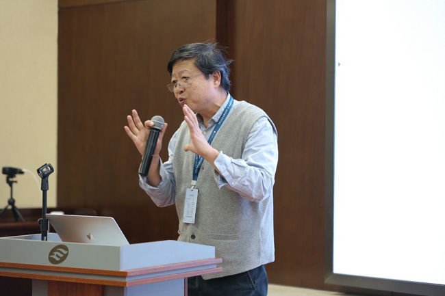 陈小文总编辑的报告为“庄子的超越性思想——《逍遥游》鸟儿问答解构”。通过使用现象学的方法,陈小文总编辑对庄子的《逍遥游》鸟儿问答之文本进行了独特的解构。在疏通庄子文本和理清其中逻辑关系的基础上,他将一个日常生活的寓言还原为生活世界的基本经验,然后对行为举止背后的原因进行探究,寻求其内在可能性的根据。最后根据生活的逻辑,他阐释了道法自然、人能悟道行道的思想,重构了庄子自己的 “道”之哲学思路。