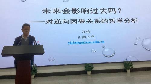 江怡教授作题为“未来会影响过去吗?——对逆向因果的哲学分析”的报告