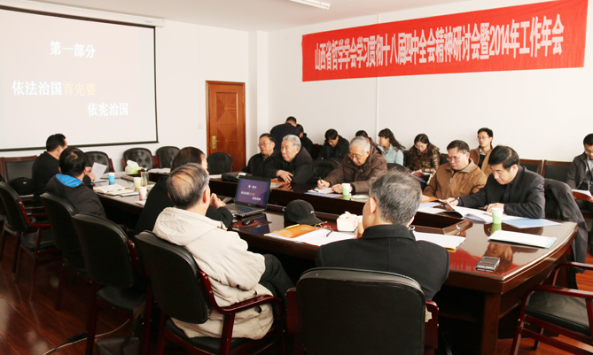 省社科联学会部尤晋鸣部长在讲话中,向与会的专家学者表示诚挚问候,对学会一年来取得的成绩给予高度肯定,并对本次年会能把“依法治国与哲学思考”做为研讨主题给予高度评价。尤晋鸣部长认为,党的十八届四中全会以“依法治国”为主题,在中国共产党93年的历史上是首次,是执政党建设中国特色社会主义法治体系,建设社会主义法治国家的纲领。当前,从哲学视野研究依法治国问题很有必要,应当从中国社会发展的历史进程中科学理解依法治国,让全面推进依法治国为我国全面深化改革保驾护航,把全面推进依法治国作为山西实现净化政治生态、实现弊革风清、重塑山西形象、促进富民强省的有力保障。尤晋鸣部长希望学会以2015年将要召开的第八次会员代表大会为契机,规范学会组织机构,完善学会运行机制,提升学会学术影响,衷心祝愿山西省哲学学会越办越好。
